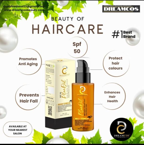 The ‘PLEX OIL as a multifunctional haircare Serum with SPF⁵⁰, positioned as a premium (#1 Best HairCare serum) product.